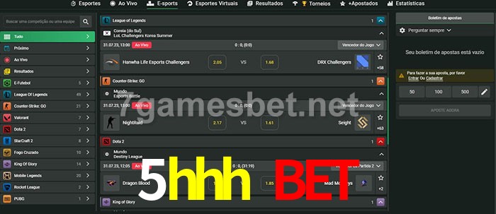 A aposta 5hhh bet oferece aos jogadores a experiência mais conveniente de apostas em eSports!